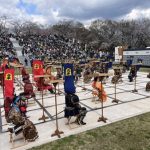 桜舞う中で人間将棋 山形県天童市