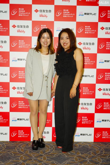 15日(金)に開幕を迎える国内女子ツアー「住友生命Vitalityレディス 東海クラシック」。プロアマ大会の前夜祭が、本日13日に名古屋市内のホテルで催され、女子プロたちが煌びやかなドレス姿を披露した。