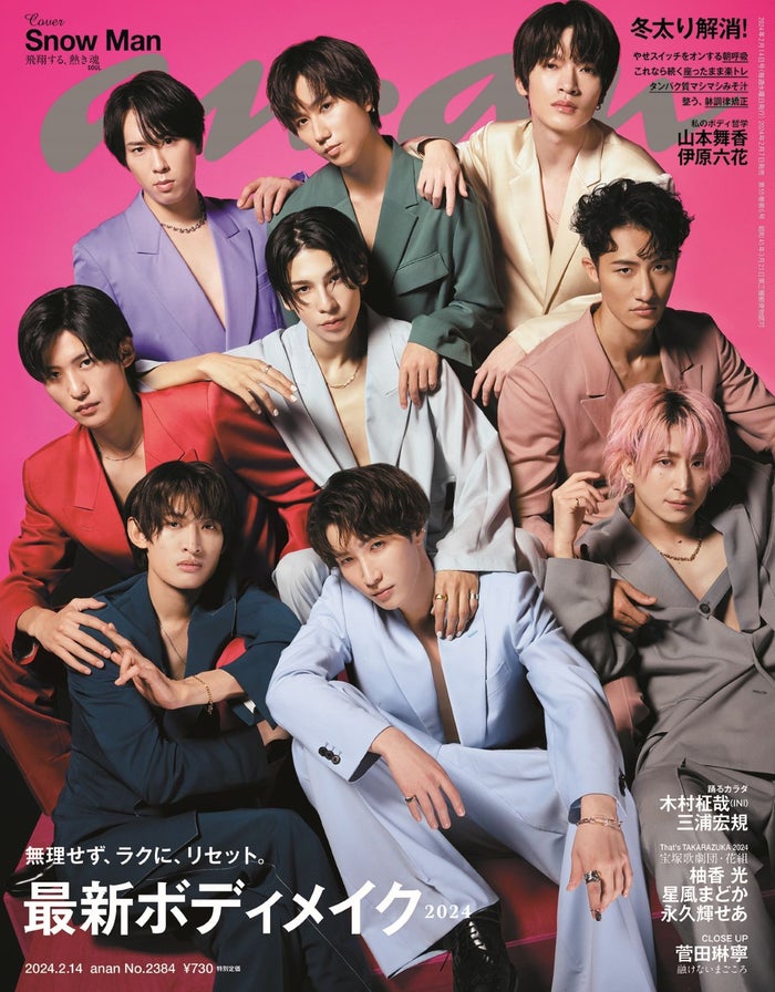 【モデルプレス=2024/01/29】Snow Manが、2月7日発売の雑誌「anan」2384号の表紙に登場。スタイリッシュな姿を披露している。