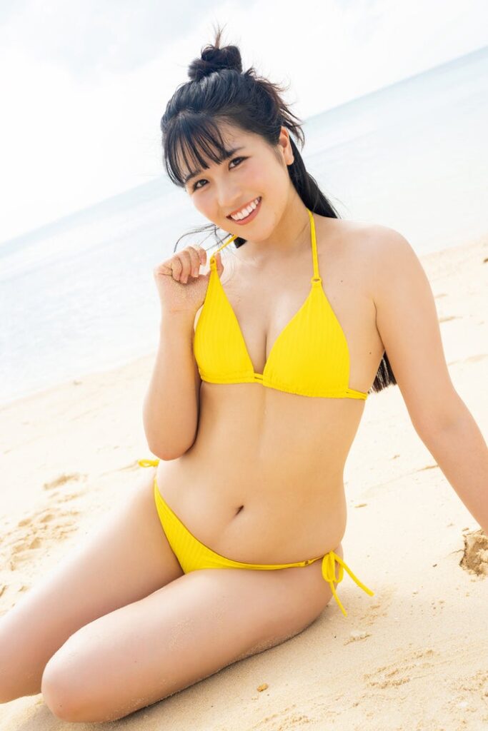 キッズモデルなどの活動をしていた元子役の白石だがグラビアは未経験。「憧れのちとせよしのさんに近づけるよう、表情やポージングを研究しています」と向上心を見せる。“色白むちフワBODY”をビーチで弾ませるほか、少し大人っぽいタンクトップ姿も披露した。