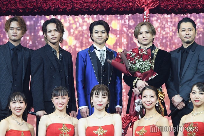 前田、公美子、梅田はそれぞれ6本のバラの花束を手渡し。その後、ステージの盆が周り、2000本のバラで作られたアーチ状のセットに上田と中山が乗って登場した。中山が、花束とアーチのバラの本数を合わせると、同日の記念の公演回数2018本になると説明し、上田は「ちょうど光一くんの身長ぐらいに作ってあって、俺等にはちょっと小さいのでしゃがんでたんですよ(笑)!」とお茶目に話す場面もあった。(modelpress編集部)