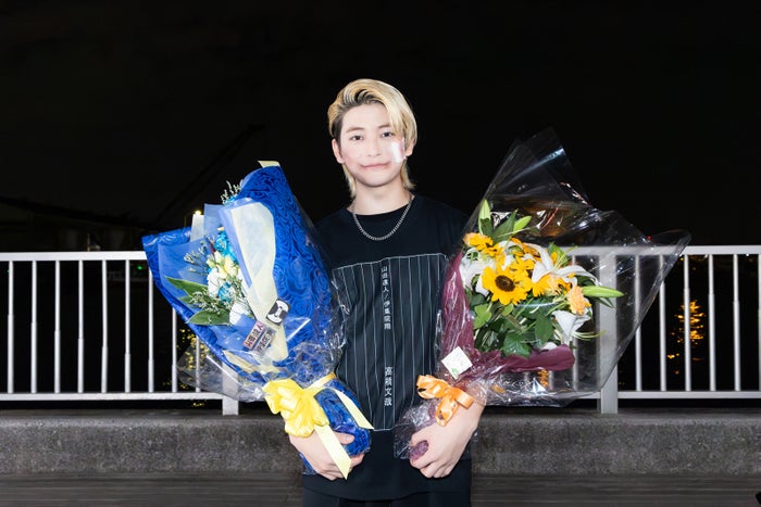 お疲れさまでした、そして、ありがとうございました!この経験を糧に、JO1としても、金城碧海としても、たくさんの場面で活躍できるように頑張っていきますので、今後ともよろしくお願いします!(手に持った花束を見て)この花も綺麗だけど、この世で一番美しいのは…?「(高橋らが)瀬山総長です!」。ありがとうございました!