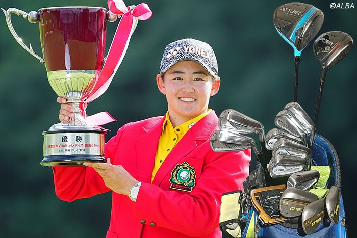 前回勝利の6月「ニチレイレディス」と異なるのは、5番ウッドを飛び系の5番アイアン『ヨネックスEZONE GT』に入れ替えたこと。その意図について、「朝の練習で、パー3のヤーデージで決めたりしています」と明かす。