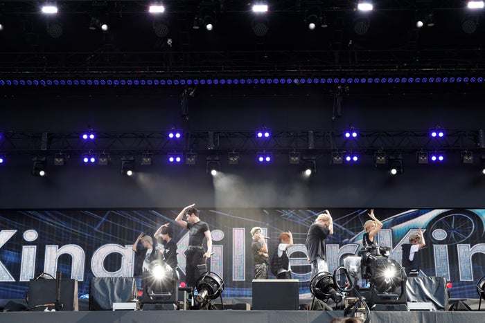 「暑さ全部飛ばすくらい踊りまーす!」と激しいラップとダンスのスキルが光る『K&K』『King Kila Game』『J.O.K.E.R.』をノンストップで披露。『J.O.K.E.R.』はデビュー前からダンサーとして活躍していたRAN(ラン)のポッピンとSEITO(セイト)のブレイキンが絡み合うダンスシーンも印象的だ。和とストリートが掛け合わさったサウンドがMAZZELの新たな魅力を引き出す新曲『DANGER』(8月18日リリース)を経て、ラストの『Parade』では再びステージに散らばり「皆最後だよ?」と会場全体を盛り上げていた。前週に、有明アリーナにて『MAZZEL 2nd One Man Tour 2025 “Royal Straight Flush”』を終えたばかりのMAZZEL。研ぎ澄まされた彼らのパフォーマンスは、灼熱の味スタをさらにヒートアップさせた。