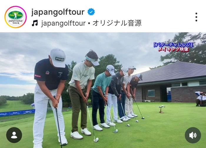 日本ゴルフツアー機構が公式インスタグラムを更新。北海道で開催中の「ANAオープン」の練習グリーンで、6人のプロが横1列に並び、同時に打って全員のカップインを狙う「パターチャレンジ」に挑戦する様子を動画で投稿した。