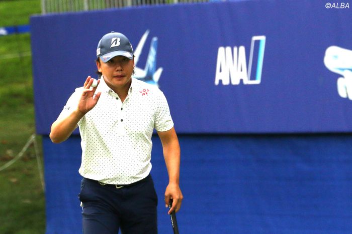 最終18番パー4は120ヤードから1.5メートルにつけて、「カップ左のフチを外すぐらい」と短い距離でも十分切れるラインを読み切ってバーディ締め。「(トータル)12(アンダー)が目標だったので。あと3つ、4つは伸ばせそうでしたが、グリーンが読み切れませんでした」と目標に届かずも、首位と7打差は首の皮一枚残ったといったところ。