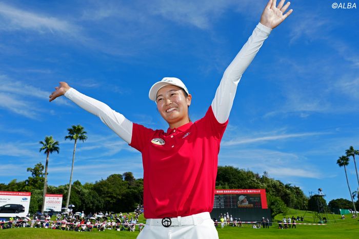 だが、今度は余裕があった。決めれば2勝目が決まる短いパーパット。同組の2人のプレーがしている間に考えた。「Skyのときは集中して忘れていた。知り合いの方などに“2勝目のときは見たい”と言われていたし、一度はやってみたかったので…」。力強く握った両こぶしを真っすぐ空に突き上げた初めてのガッツポーズ。全身で喜びを表現した。