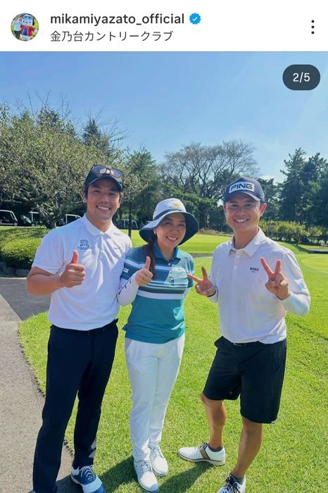 この日は夫でレーシングドライバーの中山友貴、男子プロの高柳直人とラウンド。投稿ではカップインしたボールを嬉しそうに指さす宮里や、笑顔の3ショットに続いて、3人のドライバーショットを動画で公開。「男子プロのドライバーショットってやっぱり迫力があるよな~ 直人さん、ありがとうございました」とお礼の言葉で締めくくった。