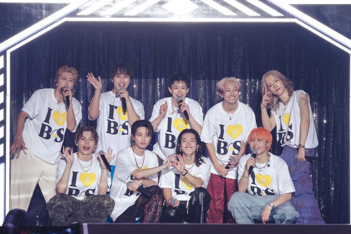 その後、アンコールの声に応え、再び登場した9人。1人ずつ思いを語ることになると、MORRIEは「まずはバディにお礼を言おうかな」と切り出し、「体調を崩してご心配をかけることも多かった」とした上で「バディの素敵な景色を見て、それが1番のお薬というか、処方箋というか」と口に。続けて「メンバーにもたくさん支えてもらって」「いつもありがとうっていうのでプレゼント用意した」といい、新ロゴが刻印されたネックレスチャームをサプライズでプレゼント。メンバーは驚きながらも笑顔を見せ、FUMIYAは「めっちゃ嬉しい!」と声を上げて無邪気に喜んだ。新しいロゴを考案したSEIYAは「新しく見えるんですけど、中身は変わってないから」と力強くコメント。「これからも引き続き、僕は初心を忘れずやっていきたいなと思ってるので、これからも温かい応援をよろしくお願いします」と伝えた。