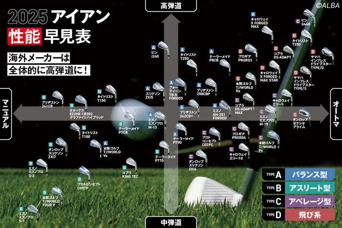 最新アイアンで、操作性と弾道の高さを軸に性能早見表を作ってみた!【41モデル試打比較】