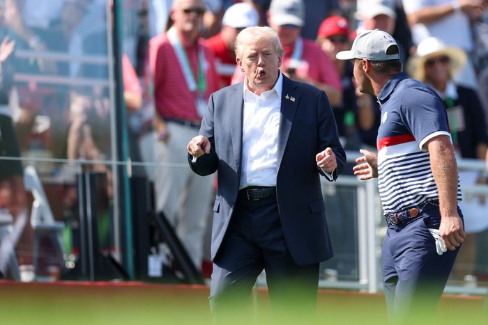午前マッチでは負けてしまった、米国チームのブライソン・デシャンボーはトランプ大統領と「ゴルフ仲間」の間柄。何度も握手を繰り返し、肩を叩かれて励ましを受けると、チームメイトのベン・グリフィンとコースに飛び出していった。