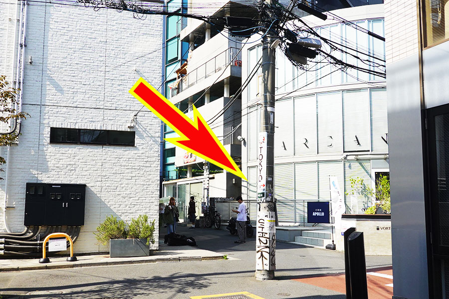 そして最後にご紹介するのが、路地裏にファッションブティックなどが立ち並ぶ渋谷区神宮前の商業地の電柱です。ここは、かつては明治通りから一本入った住宅地でしたが、近年になって商店が多数立地するようになり、そうしたお店を訪ねる歩行者だけでなく、配送のクルマも多数行き交います。