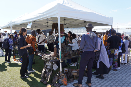 〔写真説明〕「コモンズまつり」の物販ブース=9月30日、大阪市此花区