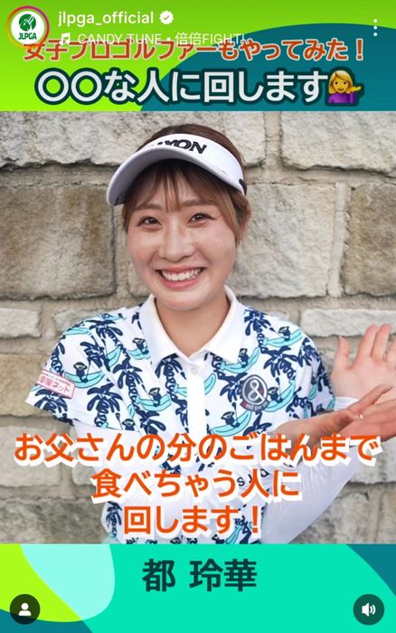 日本女子プロゴルフ協会が公式インスタグラムを更新。最近、SNSで流行っている「○○な人に回します」と言いながら次々に動画をつないでいくシリーズに、女子プロゴルファーが挑戦する様子を投稿した。