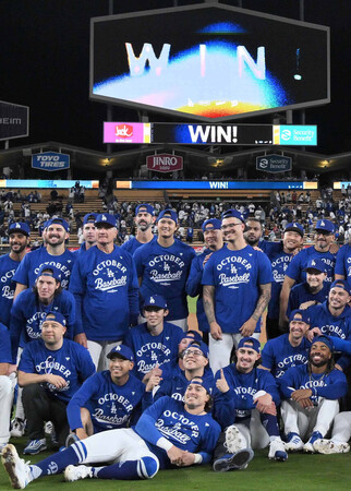 【ロサンゼルス時事】米大リーグのプレーオフは1日、各地でワイルドカードシリーズ(3回戦制)の第2戦が行われ、ナ・リーグのドジャースが8―4でレッズに連勝し、地区シリーズ進出を決めた。