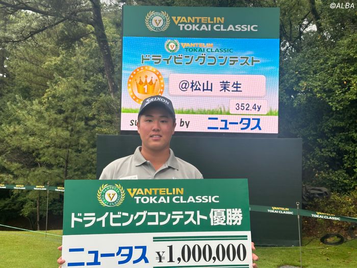 第3ラウンド終了後に大会恒例のドラコンイベント「東海クラシック ドライビングコンテストsupported by ニュータス」が行われ、大会出場選手の中から10人が参加。大会新記録となる352.4ヤードをマークした17歳のアマチュア・松山茉生(まお、福井工大付属福井高2年)が、並み居る飛距離自慢のプロを抑えて、2年連続で飛ばし屋ナンバー1の称号と賞金100万円を手にした。