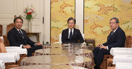 榛葉氏は「基本理念はほぼ一致できる」としつつ、所得税の課税最低ライン「年収の壁」引き上げとガソリン税暫定税率の年内廃止を要請。「やり切るかどうか見極めたい」と語った。