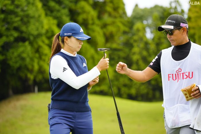 1番から8メートル、さらに2番でも7メートルのバーディパットが決まった。この日のパット数は25回。しかも“ただ決まったから、よし”というわけではない。「切れそうだけど入ってくれたのもあったし、弱いかもというのが思ったより転がってくれたりした。いい転がりをしてる証拠だなというのは回りながら感じていました」。内容も伴ったからこそ、深くうなずける。
