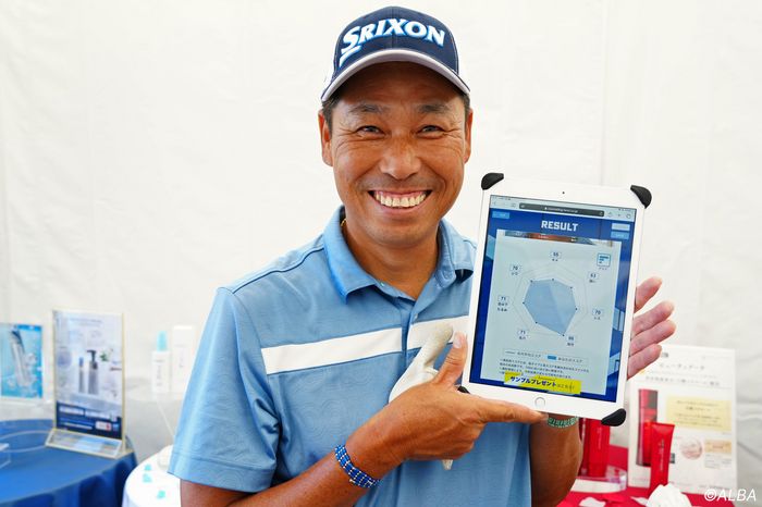 もちろん今大会に来た多くのギャラリーも診断を受けていた。そのなかで国内シニアツアーに「推しがいて」とよく来場している女性も自身の素肌スコアをチェック。「うれしい。暇な時間にできるので」と笑顔を見せる。「自分が思っているのと違う結果が出たのでびっくりしました。ゴルフも年間80ラウンドぐらいするので、シミがたくさん出ると思っていたら、シミではなく、乾燥のほうがひどいみたいで。保湿を勧められました」。すぐさまファンケルの化粧品コーナーで商品もチェックしていた。さらには健康診断も行い「いろいろ知ることができてよかったです」と満足する姿が印象的だった。