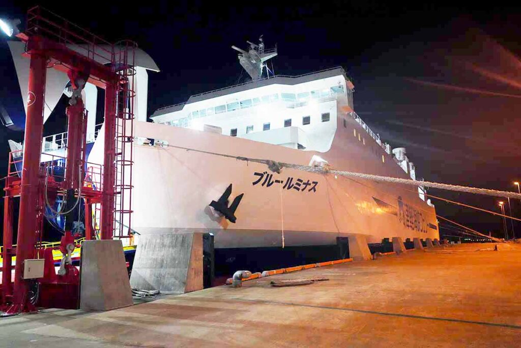 筆者(安藤昌季:乗りものライター)が乗船した際は、室蘭20時50分発、青森3時50分着のダイヤでした。室蘭港フェリーターミナルは真新しい建物で、岸壁には船尾を向けた「ブルールミナス」が停泊していました。