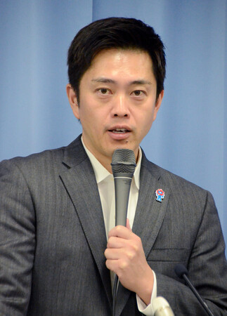 〔写真説明〕記者団の質問に答える日本維新の会の吉村洋文代表=22日午後、大阪市中央区