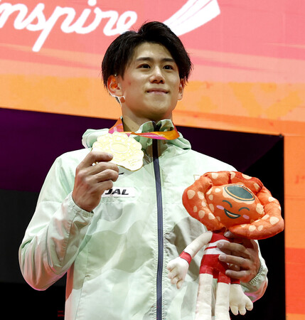 【ジャカルタ時事】体操の世界選手権第4日は22日、ジャカルタで男子個人総合決勝が行われ、橋本大輝(日本生命・セントラルスポーツ)が6種目合計85.131点をマークし、3連覇を果たした。2015年大会まで6連覇した内村航平以来、史上2人目の偉業。パリ五輪3冠の岡慎之助(徳洲会)は合計81.797点で5位だった。