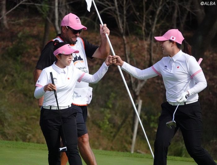 女子の国別対抗戦が開幕した。予選プールBのチームジャパンは、山下美夢有&竹田麗央ペアと古江彩佳&西郷真央ペアが、世界選抜と対戦している。なお予選は、それぞれのボールでプレーし、少ない選手のスコアを採用するフォアボール方式で行われる。