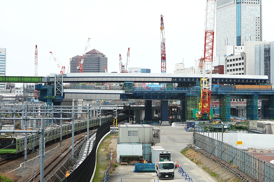 東京都港区で都市計画道路「環状4号線」の整備が進んでいます。2025年7月現在、JR線の品川-高輪ゲートウェイ間では、広大な鉄道空間を一気にまたぐ橋が姿を現しています。どのような道路になるのでしょうか。