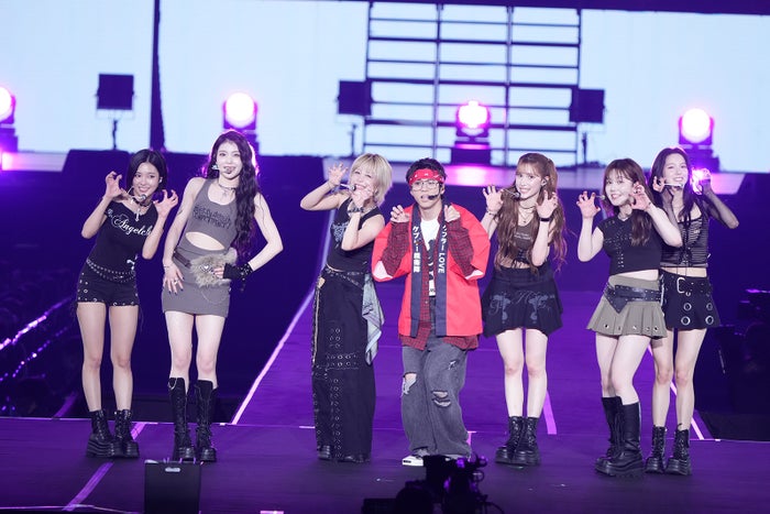 ラジオでも“推し”として、山田が度々名前を挙げていたKep1er。ミニ丈の衣装で登場すると、会場には割れんばかりの歓声が響き渡った。「Shooting Star(Japanese ver.)」「Up!(Japanese ver.)」「Yum(Japanese ver.)」「BUBBLE GUM」の4曲を披露し、圧巻のパフォーマンスで会場の空気を一変させた一同。可愛らしい日本語での挨拶で観客とコミュニケーションを図りつつ、ラスト1曲となると、山田が“オタク”風の衣装に身を包みステージに登場。しかし、彼の前には“立入禁止”のコーンが並べられ、思うように近づくことができない。 そんな中、Kep1erの「WA DA DA(Japanese ver.)」が流れ始めると、最後は山田がコーンを飛び越えてステージ中央へ。Kep1erとの夢のコラボが実現した。