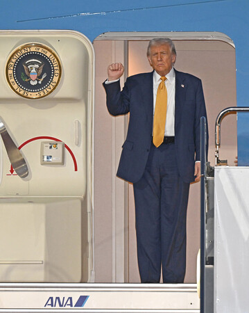 〔写真説明〕羽田空港に到着したトランプ米大統領=27日午後、東京都大田区(代表撮影)