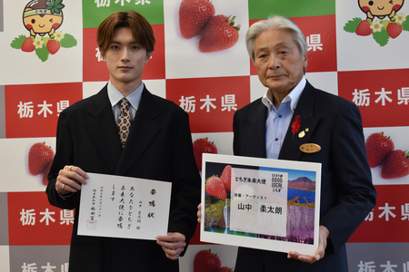 栃木県は、ダンスボーカルグループ「M!LK」メンバーで同県出身の山中柔太朗さんを「とちぎ未来大使」に委嘱した。山中さんは「大使はずっとやりたかった仕事の一つ。ファンの方々を中心に、SNSなどで栃木県の魅力を広めていきたい」と就任の喜びを語った。