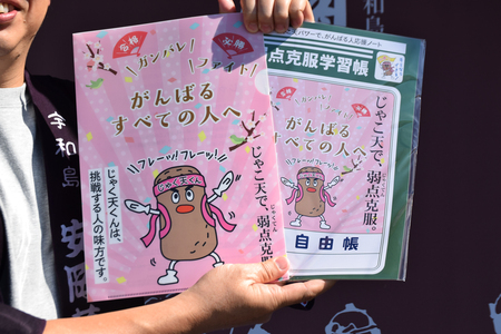 〔写真説明〕頑張る人を応援するキャラクター「じゃく天くん」をあしらった文房具=9月、愛媛県宇和島市