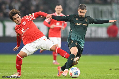 マインツの佐野は今節も攻守に渡ってピッチの広範囲をカバーし、フル出場。一方、ブレーメンの菅原もフル出場し、何度かタイミングの良い攻め上がりを見せたが、ハイボールの対応に苦しむ場面も。なお、マインツの川﨑に出場機会は与えられなかった。