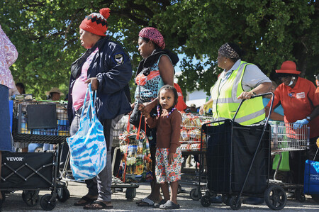 〔写真説明〕食料の受け取りに並ぶ人々=10月30日、米南部フロリダ州マイアミ(AFP時事)