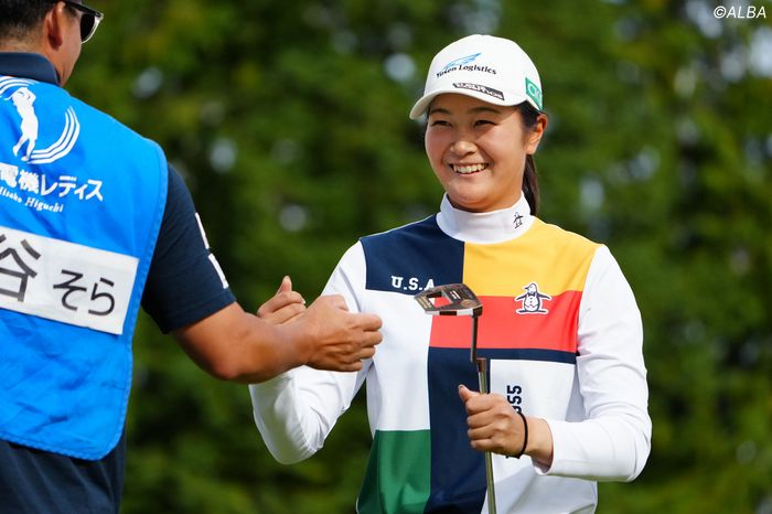 年間女王争いで2番手につける神谷そらが、じわじわと順位を上げてきた。首位と2打差の7位タイから出たこの日、6バーディ・1ボギーの「67」で回り、首位の後藤未有と2打差の3位に。メルセデス・ランキング(以下MR)1位の佐久間朱莉とともに最終組に入り、直接対決となる。