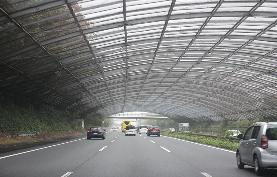 なお、金網で覆われたトンネル状の構造物が、すべて飛球防護を目的としているわけではありません。一部では、鳥の生息環境を保護する目的で、高速道路を金網で覆う措置が取られる場合もあります。そのようなケースでは、側面が光や騒音を遮る金属製の防壁となっており、上部のみが金網状になっていることが多いようです。
