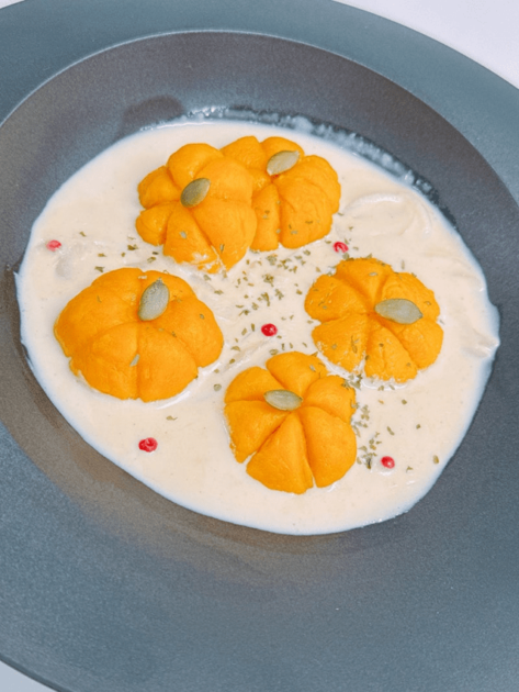 続けて更新したブログでは、「少し早めの ハロウィン ごはん」「かぼちゃニョッキ」と綴り、一口サイズの鮮やかなオレンジ色でクリームソースに浮かぶ、まるでレストランの一皿のような料理の写真を公開した。