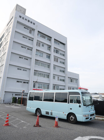 〔写真説明〕送検のため安福久美子容疑者を乗せ、愛知県警春日井署を出るバス=2日午前、愛知県春日井市