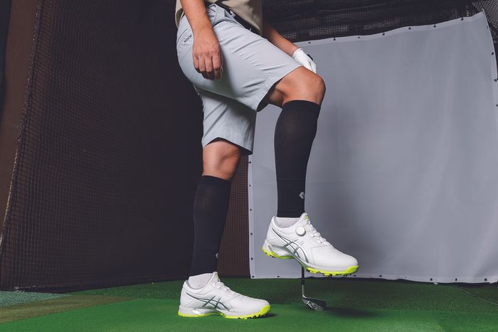 「さまざまなモデルを試しましたが、着圧の強いものは、ふくらはぎをギュッと締めて筋肉の揺れを防いでくれて、足が軽くなったように感じます。着けるだけで軽快に歩けますので、ラウンド時の疲労軽減が期待できそうです。また、ラウンド後に着けてリカバリーに使うこともできますので、ゴルファーなら1つ持っておいて損はないですよ」