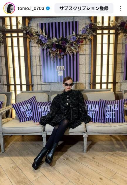 板野は、自身のInstagramアカウントにて、“ANNA SUI”のショーを訪れたことを報告すると、黒のトップスにブーツを合わせて、タイツを纏った美脚を披露している写真を複数公開。