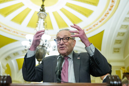 〔写真説明〕米野党民主党の上院トップ、シューマー院内総務=4日、ワシントン(EPA時事)
