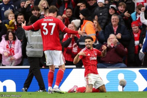 前半はこのまま1-1で終了。後半に入ると、次の1点は68分に生まれる。ムリージョの蹴ったサイドチェンジのボールから、敵陣右サイド深い位置へ駆け上がったオマリ・ハッチンソンにボールが渡ると、マイナス方向へ切り込んで左足でクロスボールを送る。最後はボックス内へ飛び込んだモーガン・ギブス・ホワイトがヘディングシュートを沈め、ノッティンガム・フォレストが逆転に成功した。