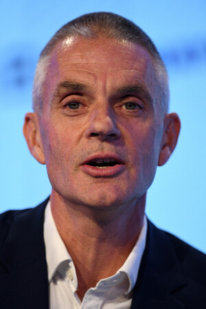 〔写真説明〕英BBC放送のティム・デイビー会長=2022年11月、中部バーミンガム(AFP時事)