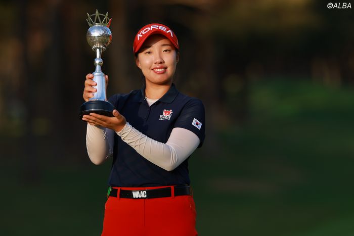 ヒョソンはアマチュアとして出場した2024年「ワールドレディスチャンピオンシップ サロンパスカップ」で7打差を逆転。15歳176日のツアー史上最年少優勝を果たした。