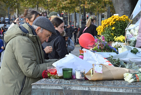 〔写真説明〕2015年に起きたパリ同時テロの犠牲者を追悼する人々=9日、パリ