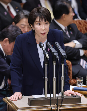 〔写真説明〕参院予算委員会で、立憲民主党の古賀之士氏の質問に答える高市早苗首相=14日午前、国会内