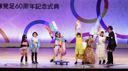 〔写真説明〕海外協力隊発足60周年記念式典でパフォーマンスを行う帰国隊員ら=13日、東京都千代田区(JICA提供)