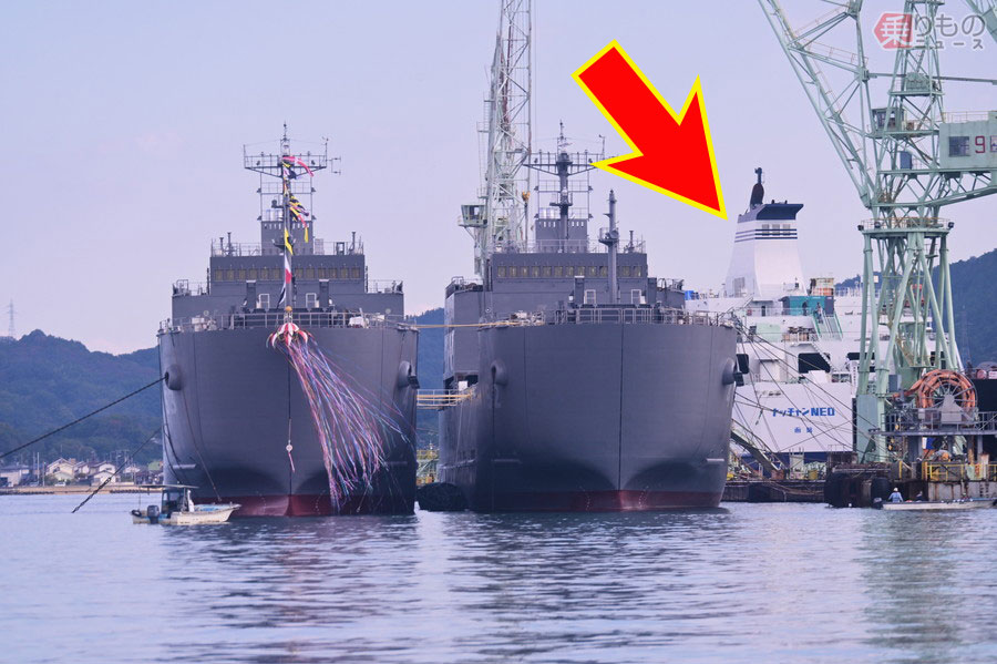 じつは、この工場のドックにはもう1隻、自衛隊の輸送能力増強の鍵を握る船がドック入渠していました。