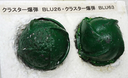 〔写真説明〕ラオスで見つかったクラスター弾の「子弾」。安全化されている=10月29日、東京都千代田区