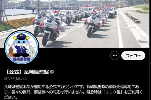 — 【公式】長崎県警察 (@NPP_kikaku) November 14, 2025